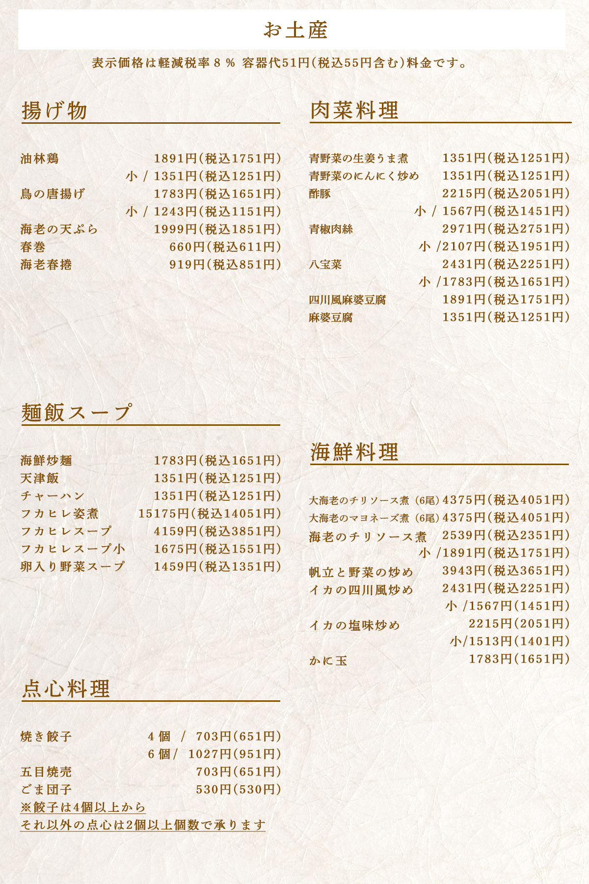テイクアウト可
